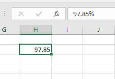 Вы можете использовать знак процента в формуле, таким образом вы можете отформатировать ячейку (я) как число и иметь чистые номера, которые вы также можете использовать как целые числа, если это необходимо.